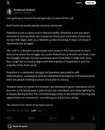 >>2589059>thats why the clean break is necessaryAt this point a break isn't going to do anything. If the genuine socialists in DSA (ex. people in Liberation caucus, MUG, etc) are serious they need to come together, split from the party, and form a new one. Call me a Trot but DSA is unsalvagable. The libs/Zionists will always have a way to control of the org and their DNC masters will make sure of that. Opsec is a joke, just look at how inner-party issues are out in the open for everyone to see, and then there's the lack of a vetting process.