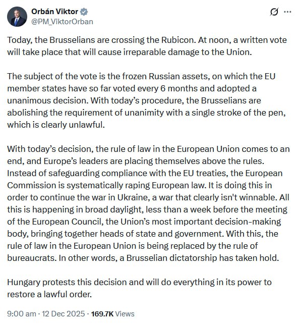 >Financial Times: Meanwhile, France has refused to contribute €18 billion from Russia, frozen in its commercial banks, to Ukraine's "reparations loan."