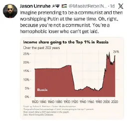 He's therefore extrapolating that people who identify as communist but support Putin and Russia are not genuinely communist but actually motivated by other, socially reactionary ideological views.