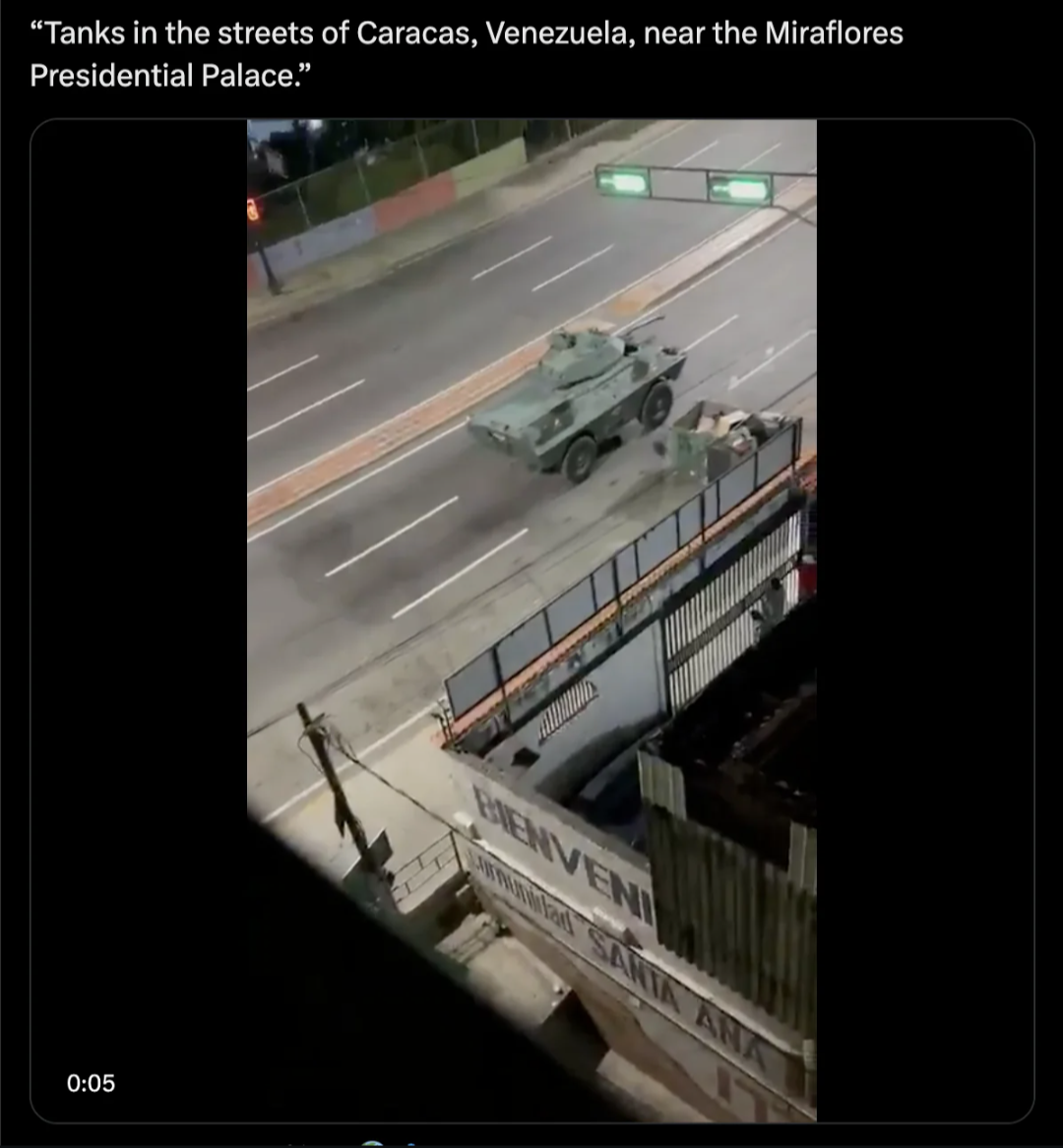 Unconfirmed reports that Maduro has been assassinated in a decapitation strike at Miraflores