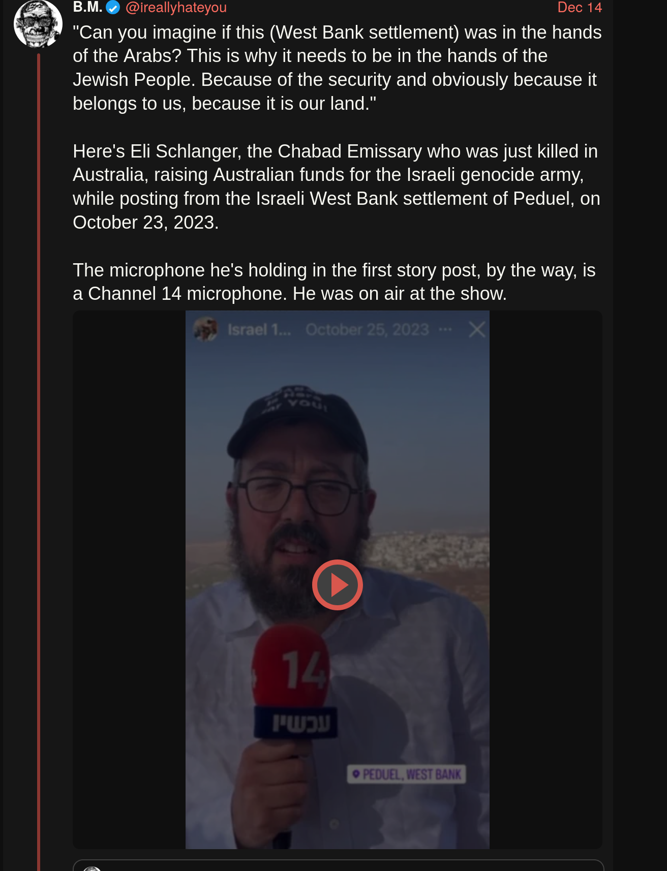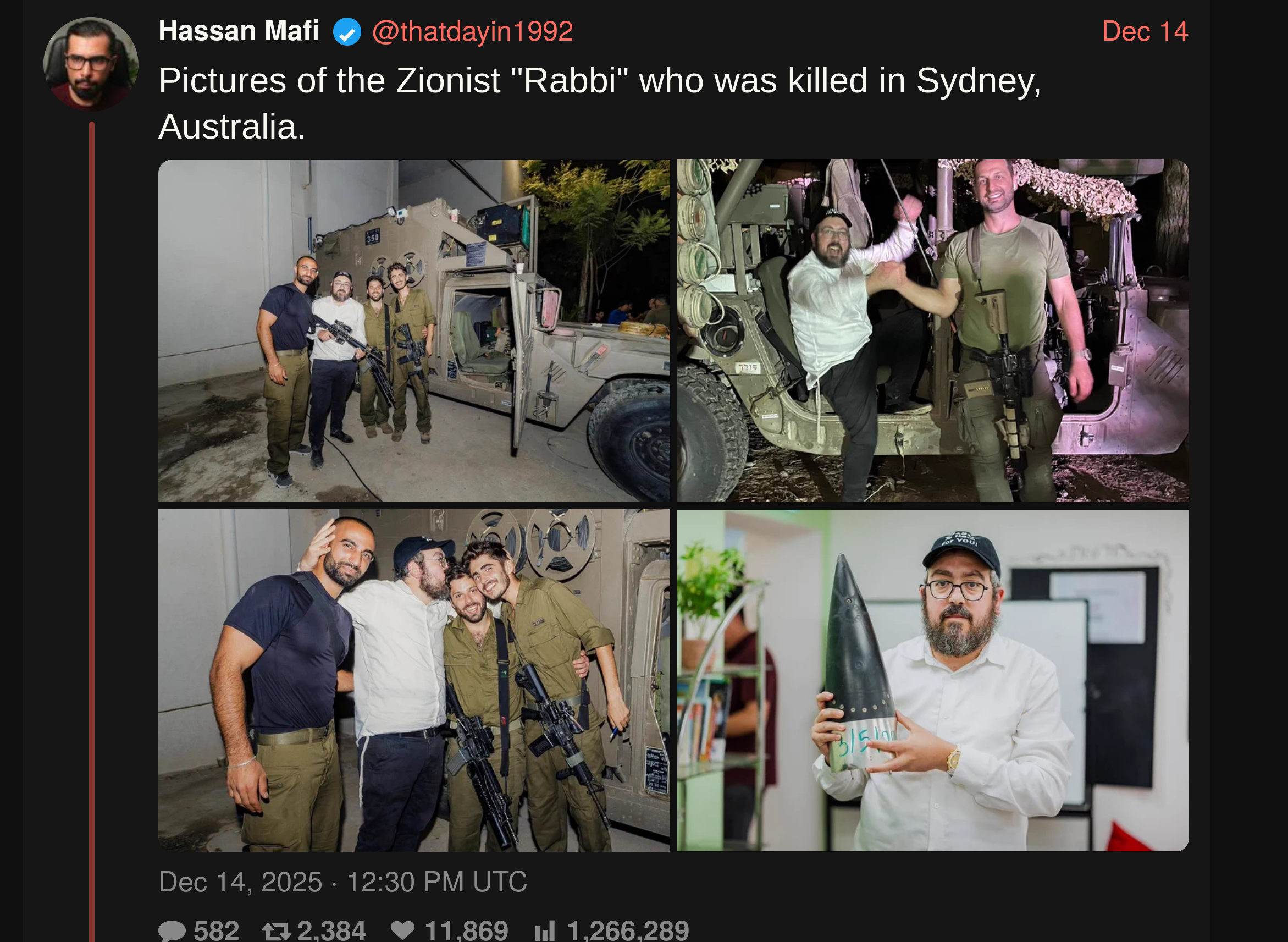 >>2598043Bro nlt everyone at a hanukka concert is a zionist, random shootings against everyday people is a rightoid thing