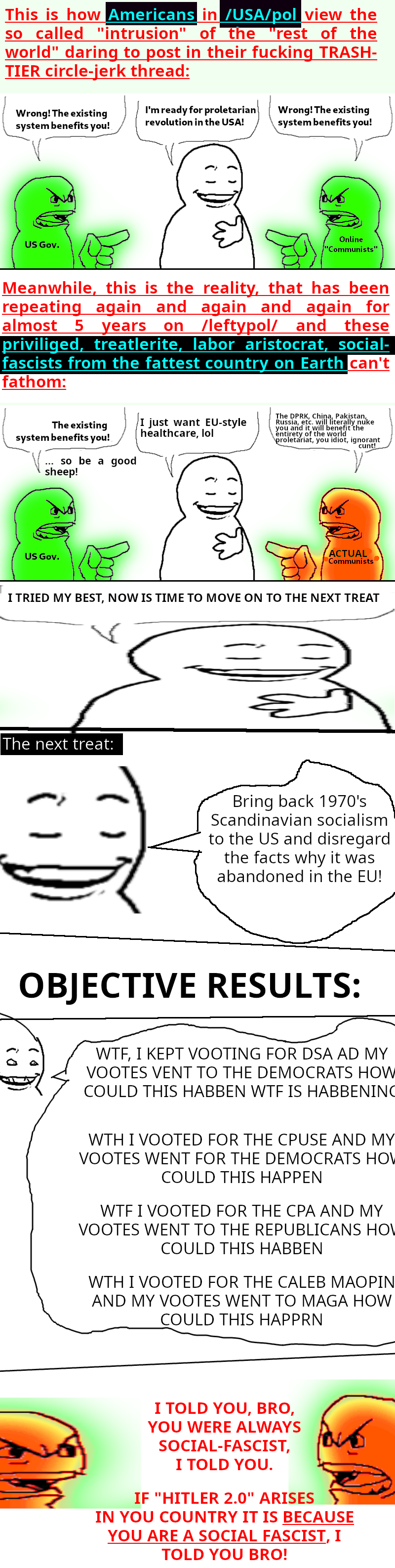 >>2598042>Hello, American friend. I have a humble request:>Mayhaps, could you at least please not vote, agitate and do free labor for politicians currently implementing the "Generalplan Ost" in my country?YOU WANT ME TO DIE!?!?1one11WHAT SORT OF INTERNATIONALIST ARE YOU, NOT IN SOLIDARITY WITH YOUR AMERICAN BROTHERS!?SOCIALISM IS WHEN I GET STUFF AND THINGS GET BETTER FOR MEDear me, what an unfortunate turn of events that NATO razed another region and killed all those millions of people (again). Ah well, nothing we could do, can't wait for