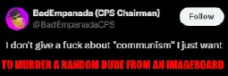 >>2598765>Stares at himself in the mirror with his prized Lenin-hat and maybe a Mao shirt he bought off Amazon™<"Fuckin'… Revisionist…">Quickdraws his Ruger<"You're an enemy of the state… an enemy of the state… I sentence you to death.">Dryfires at the mirror<"You've betrayed Socialism. On behalf of the people the punishment is death.">Stares at himself pointing the gun, wondering if it looks like that famous picture of that Soviet Commissar>Goes to bed later that night.<"Listen you fuckers, you pigs, here is a worker who would not take it anymore, who would… listen you fuckers, you fascists, here is a worker who would not take it anymore, a man who stood up against the imperialists, the fascists, the revisionists; here is…" >>2598766your avatarfagging is more annoying than felix and CPUSAnon fighting