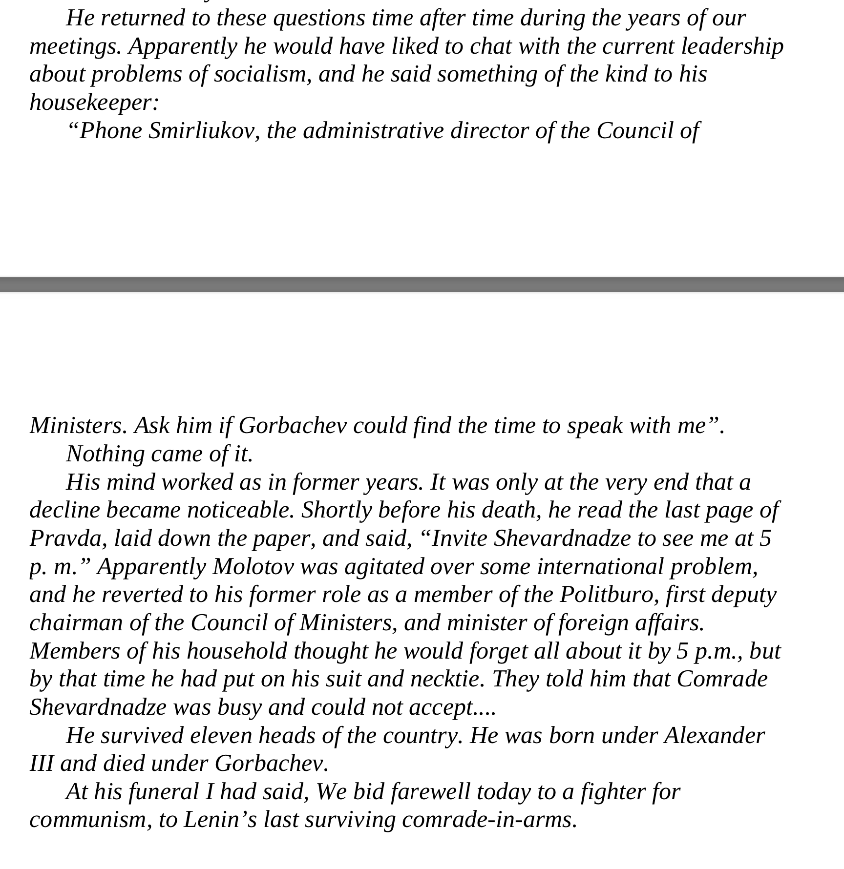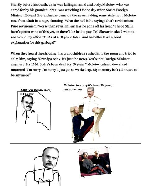 >>2599914Yeah that's Old Molotov. Read Molotov Remembers. It's highly informative. And you also see the gulf between these Old Bolsheviks and modern 'communists'. It becomes clear why they moved mountains and rivers and why we shitpost on the internet.