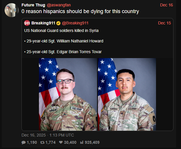 >>2602132>up until they see coffins coming homeThey're not going to care. The average right winger who'd support the war is gone, mentally. They're absolutely bloodthirsty and seeing coffins will enrage them and fuel their fervor.