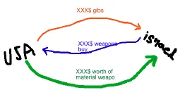 Another line of attack, if USA sends the money and USA receives the money, it means a net zero transfer of money. BUT! There is a transfer of weapon from USA to Israel.