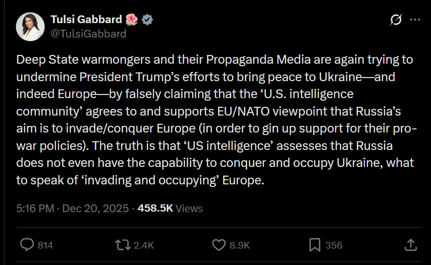 >>2607862No, I dont think that, as I said earlier there are two things where I think there is/was a real divide, the tariffs shit and throwing Ukraine under the bus. This doesnt disprove that they do this good cop/bad cop thing.