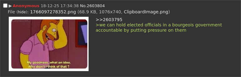 >>2607867Maybe in other cases, maybe on smaller, local issues, not this one, at least I dont see how.