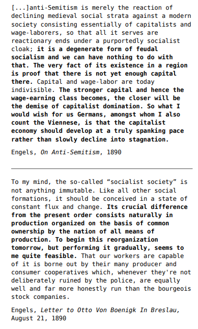 >>2607937They were an actual worker-lead movement with worker-control of the means of production. They definitely weren't perfect, but they're infinitely closer to what Marx and Engels had in mind when they described a transitional DotP than, say, the Soviet Union, which was just capitalism with state-enforced monopolies, or China, which is even less socialist than that.