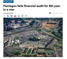 https://www.defensenews.com/news/pentagon-congress/2025/12/19/pentagon-fails-financial-audit-for-8th-year-in-a-row/The Pentagon failed its financial audit for the eighth consecutive year, the Defense Department said Friday, highlighting the ongoing systemic challenge the nation’s largest federal agency faces in fully accounting for its assets.