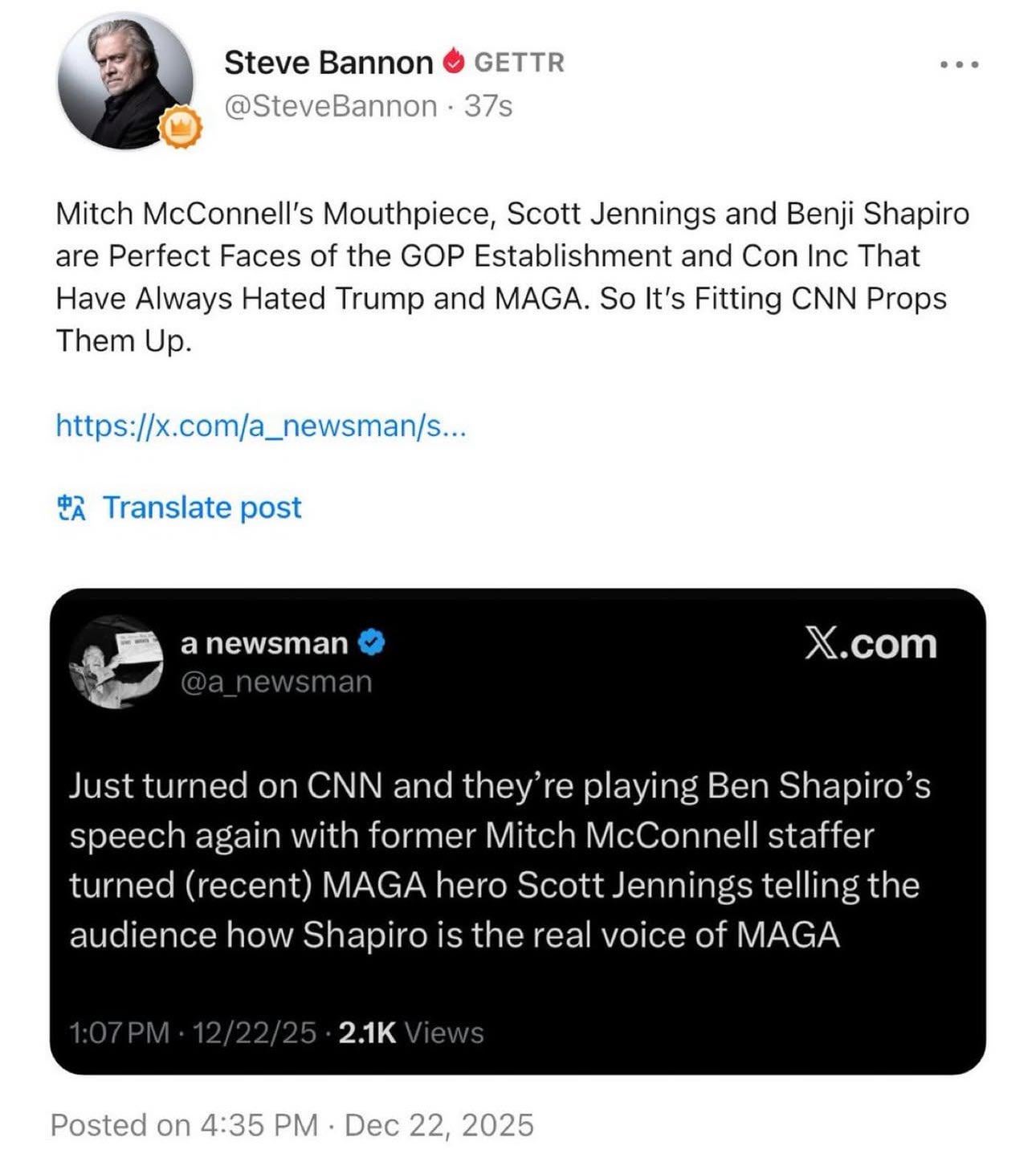 Also trump is panicking hard because he fears sabotage at FBI and that Thiel wants to replace him with Vance since internal GOP polling revealed that Vance is deeply unpopular with everyone. MAGA is dead and the GOP doesn't know who to push out for 2028 and they know thry will lose the midterms hard. You will know shit got serious when Trump will fire Bondi and Patel on 26th of december.