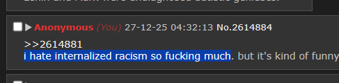 >>2614893These people are mentally ill. Stop whitewashing (pun intended) internalized racism and race essentialism, you dipshit.