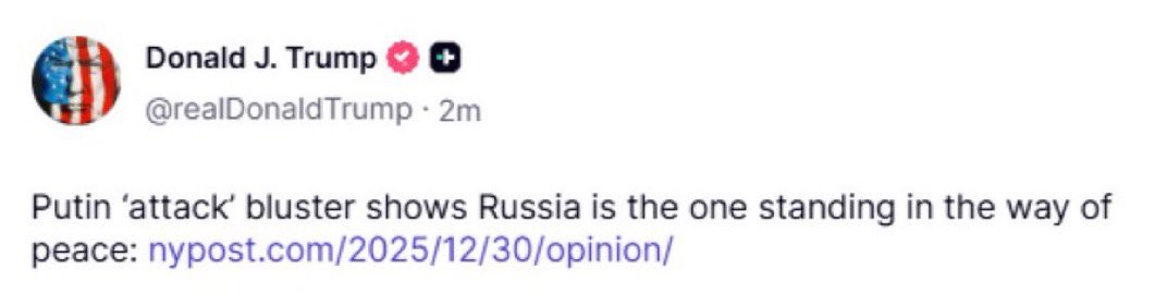 >Trump reposts article on Truth Social blaming Putin as the one standing in the way of peace
