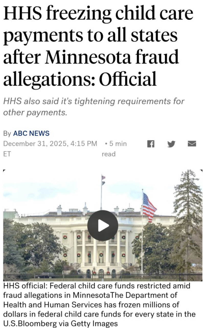 This story coming out of Minneapolis seems to be the next wedge issue that American conservatives will exploit for votes and support for ICE terrorism against the Somali community. So what exactly happened here? Some MAGA kid went around a few Somali-owned daycare centres in the Twin Cities area outside of operating hours and harassed the care workers in order to "prove" these centres were fronts for money laundering without proving any hard evidence. Is that correct?