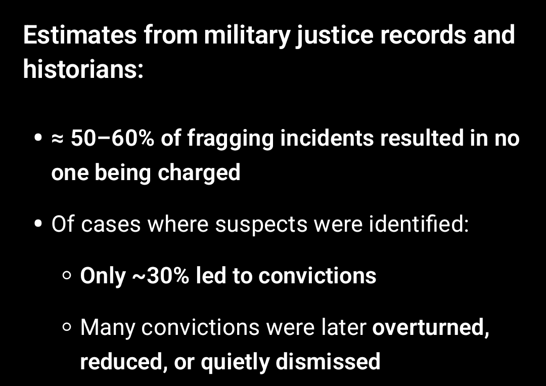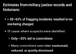 >>2626014>>2626011yeah people forget most aren't even clearly fragging incidents vs accidents or combat deaths.