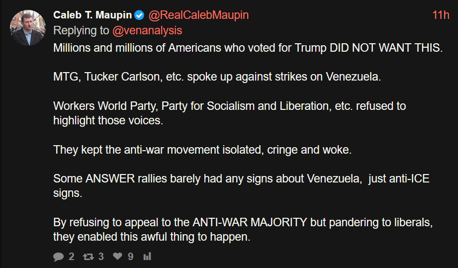 >>2626156MAGA communist blames the wokes instead of the guy bombing Venezuela
