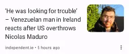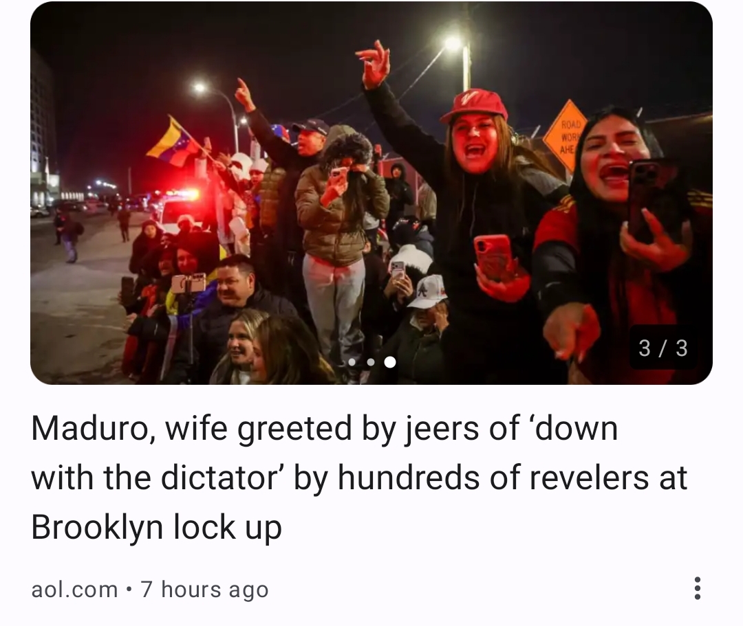 >Read an article from my city's newspaper about Venezuelan immigrants reacting to Maduro getting kidnapped