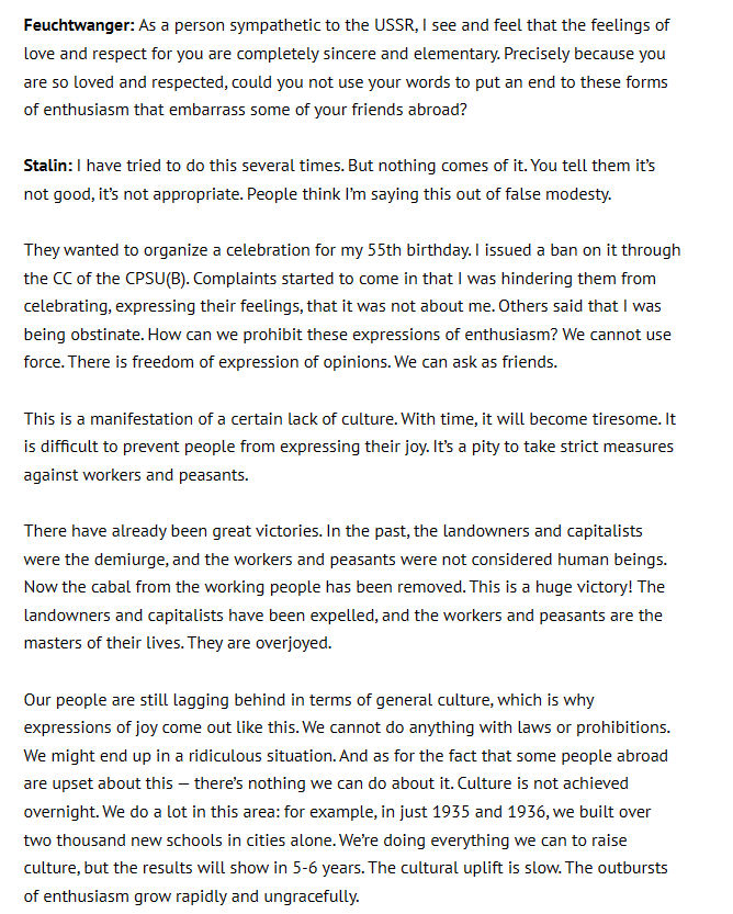 >>2628222>the Perestroika was a deceptionAfter the 20th Congress, in the ultra-narrow circle of our closest friends and like-minded people, we often discussed the problems of democratization of the country and society. They chose a method as simple as a sledgehammer to propagate the "ideas" of the late Lenin. It was necessary to clearly, clearly and distinctly isolate the phenomenon of Bolshevism, separating it from the Marxism of the last century. That is why they tirelessly talked about the "genius" of late Lenin, about the need to return to Lenin's "plan for the construction of socialism" through cooperation, through state capitalism, and so on. A group of real, not imaginary, reformers developed (orally, of course) the following plan: to strike with the authority of Lenin at Stalin, at Stalinism. And then, if successful, - to strike with Plekhanov and Social Democracy - at Lenin, and then – with liberalism and "moral socialism" - at revolutionarism in general. A new round of exposure of the "cult of personality of Stalin" began. But not with an emotional outcry, as Khrushchev did, but with a clear implication: the criminal is not only Stalin, but the system itself is criminal. – Alexander Yakovlev [Black book of communism Russian edition]