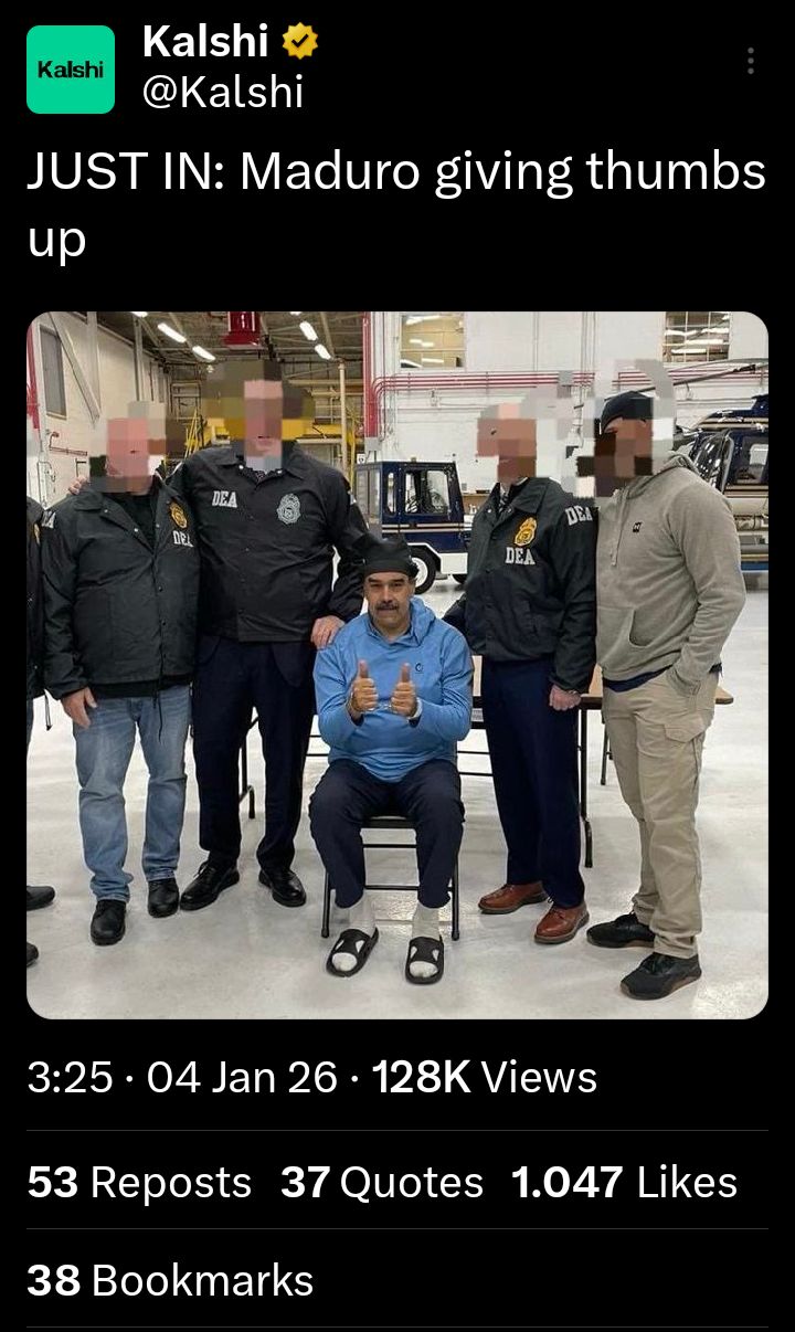 Everyone wins: Donald looks strong in front of his retard MAGA base, Maduro gets to chill for a bit before accepting asylum outside the Americas, PSUV gets to stay in power while becoming more openly kleptocratic and pro-bourgeois. Useful idiot expats get to cheer the removal of a 'dictator,' useful idiot leftists get to rail against American imperialism while still carrying water for the Venezuelan state.