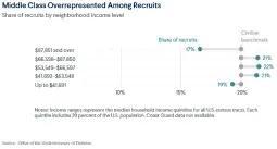 This is what the first article defines as "middle class". The literal middle income brackets, 60% of the country! Enlisted are 1-2% more represented in those brackets. Wow! Just ignore that they're underrepresented in the highest income quintile (where the actual petty bourg would reside), very inconvenient.