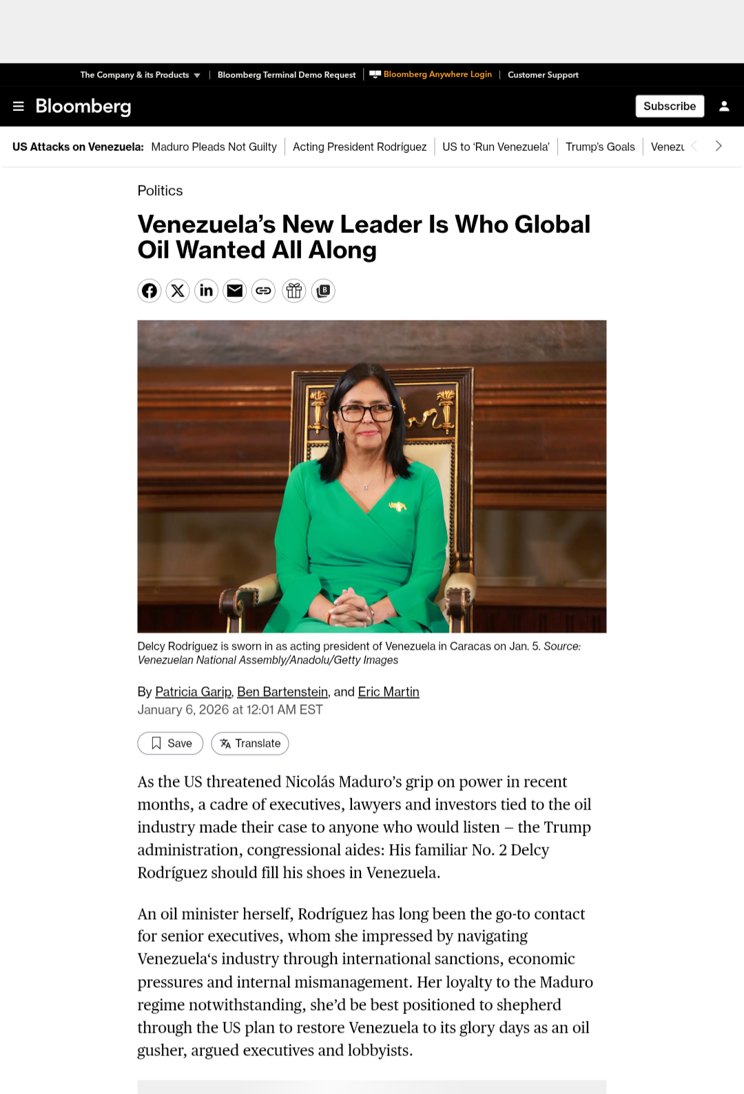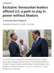 >Exclusive: Venezuelan leaders offered U.S. a path to stay in power without MaduroA group of senior Venezuelan government officials, led by Vice President Delcy Rodríguez and her brother Jorge, who is president of the National Assembly, have quietly promoted a series of initiatives in recent months aimed at presenting themselves to Washington as a “more acceptable” alternative to Nicolás Maduro’s regime, according to people with direct knowledge of the talks. The proposals, funneled through intermediaries in Qatar, sought to persuade sectors of the U.S. government that a “Madurismo without Maduro” could enable a peaceful transition in Venezuela—preserving political stability without dismantling the ruling apparatus.