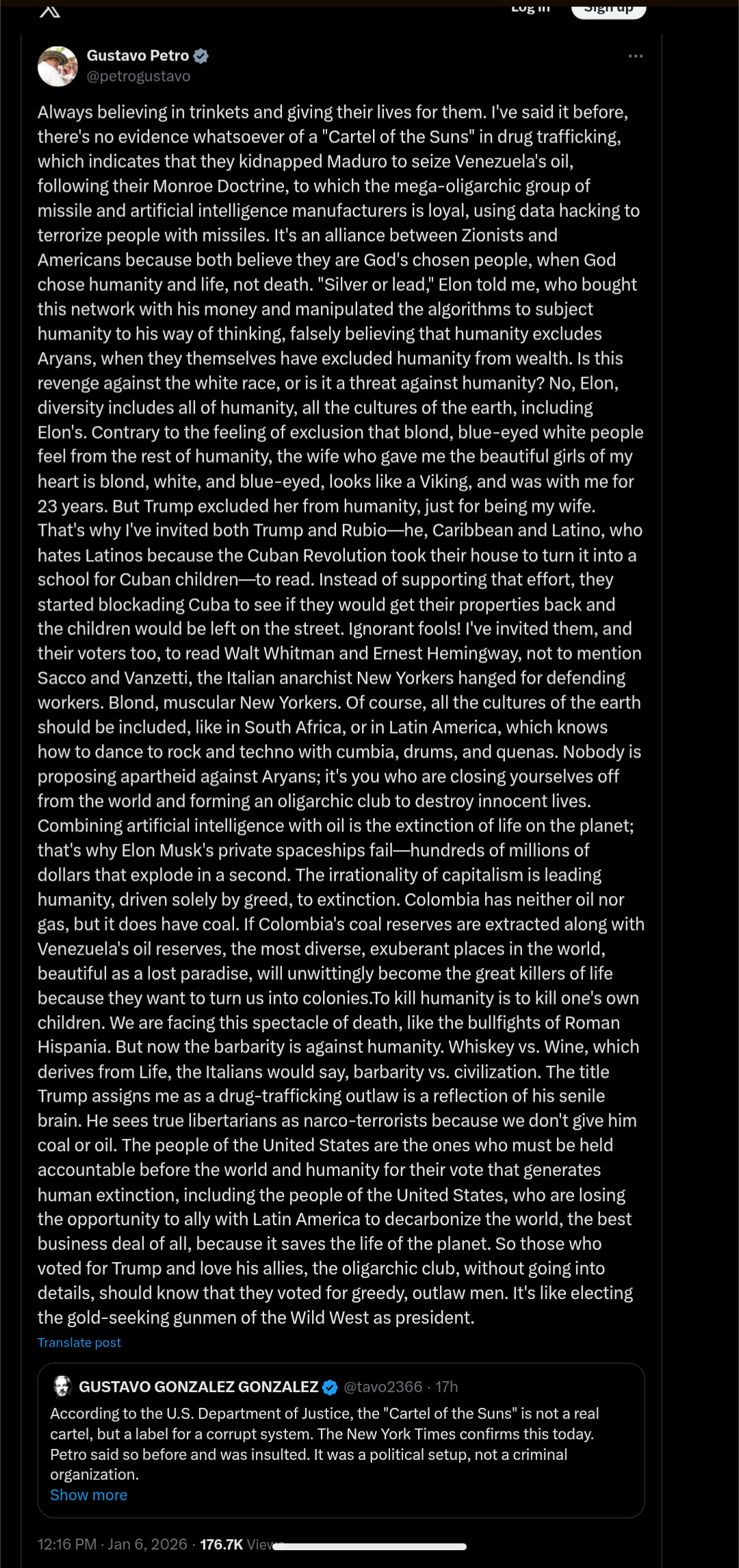 https://web.archive.org/web/20260105085453/https://www.miamiherald.com/news/nation-world/world/americas/venezuela/article312516272.html>>2629635>Imperialist sanctions force the hand of imperialized state>blame the victimCIA isn't sending his best today