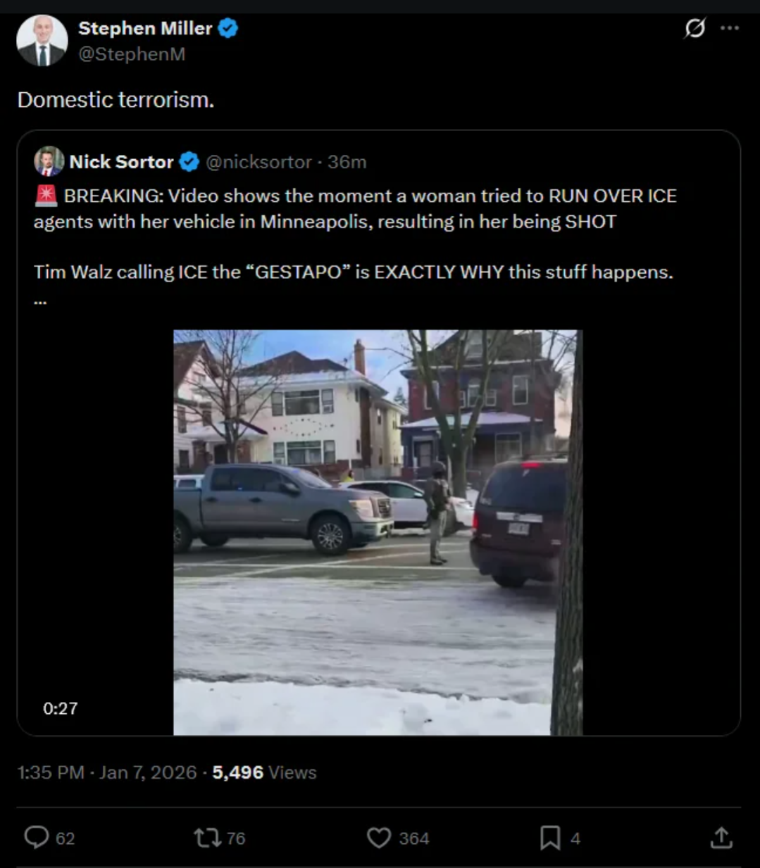 ICE SHOOTS DEAD OBSERVER IN MINNEAPOLIS