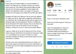 >Russian gerontocracy is more of an emergency than American gerontocracypoor analysis. it's Russia's material conditions, not America's, what drives their foreign policy. the US wants expansion, re-draw international law. doing the same will lead to war.