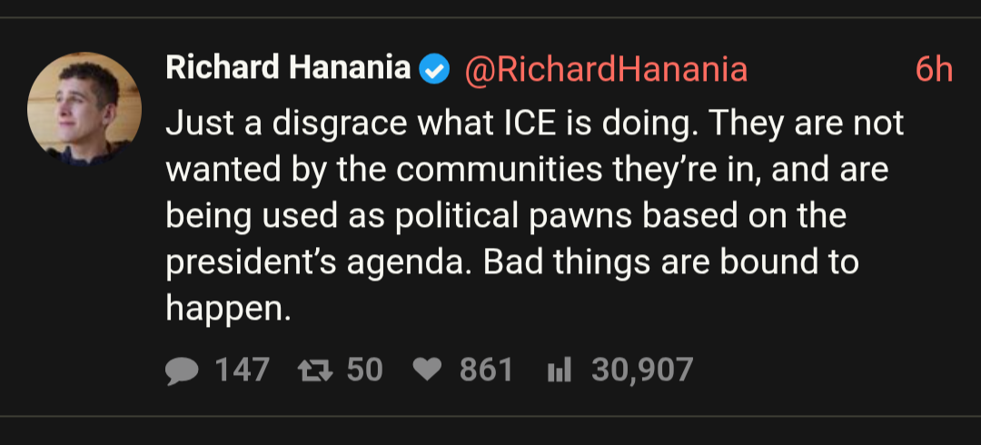 >>2634303Also, another thing is that Richard, he would find it reasonable to run the country as like the UAE in regards to their immigration system and find that beneficial. However, the magatite people are so racist that they are not even able to utilize this because they would see immigrants with like no rights in their country as they are being replaced while somebody like hanania would look at it purely from an economic benefit perspective, which as you said is libertarian