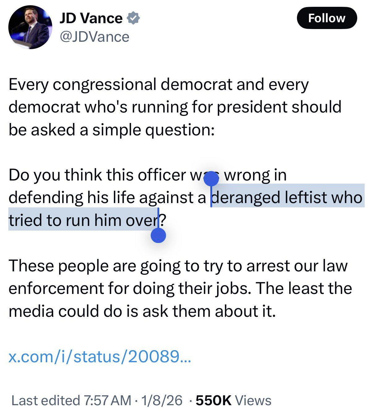 Republican Thune: "What happened in Minneapolis is an indication of the uptick we're seeing across the country in these protesters starting to attack ICE officers, law enforcement officers who are trying to lawfully enforce immigration law"