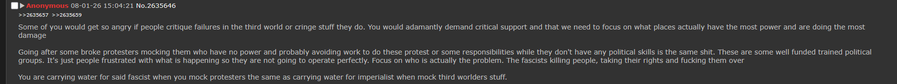Some of you would get so angry if people critique failures in the third world or cringe stuff they do. You would adamantly demand critical support and that we need to focus on what places actually have the most power and are doing the most damage