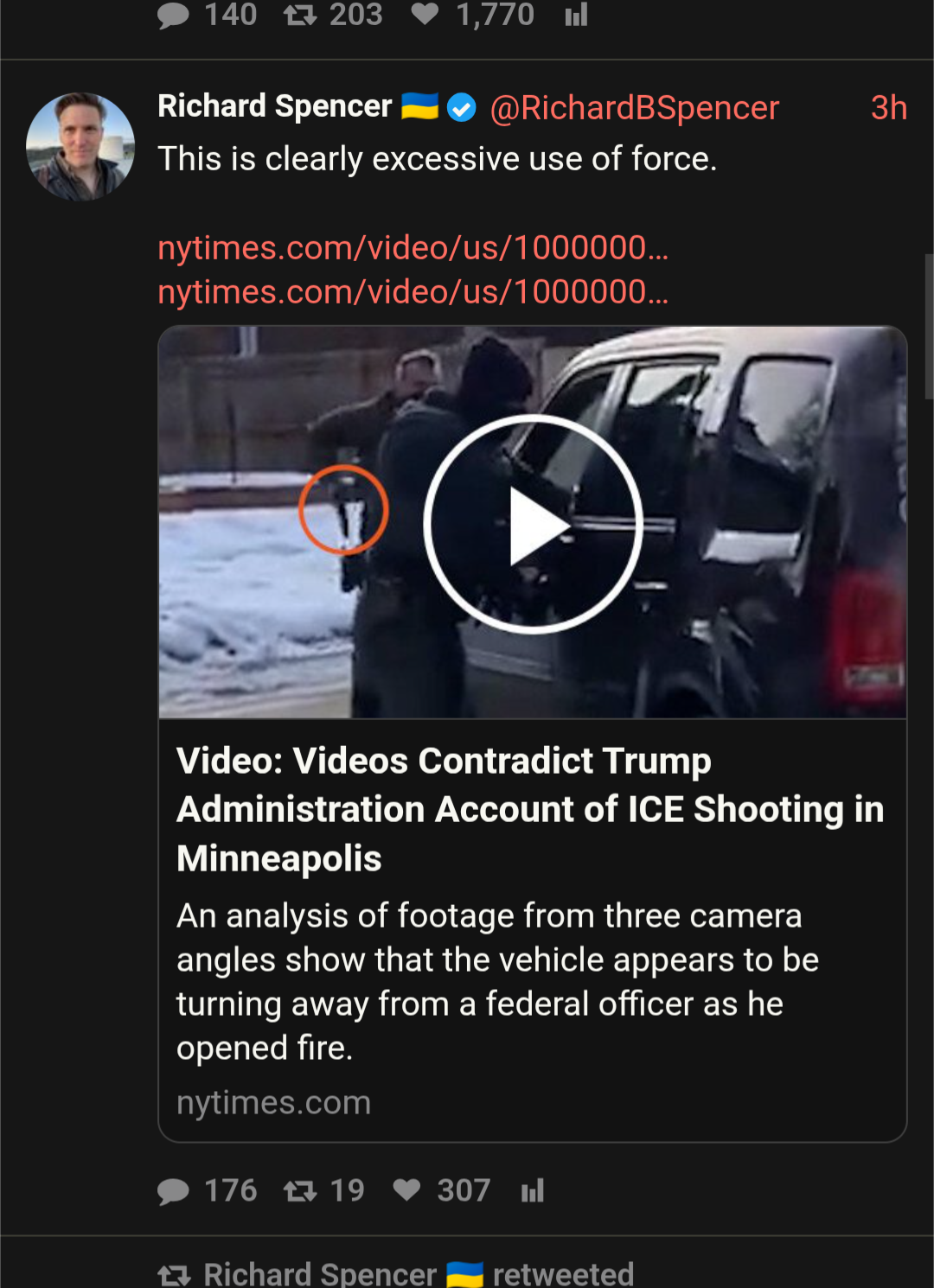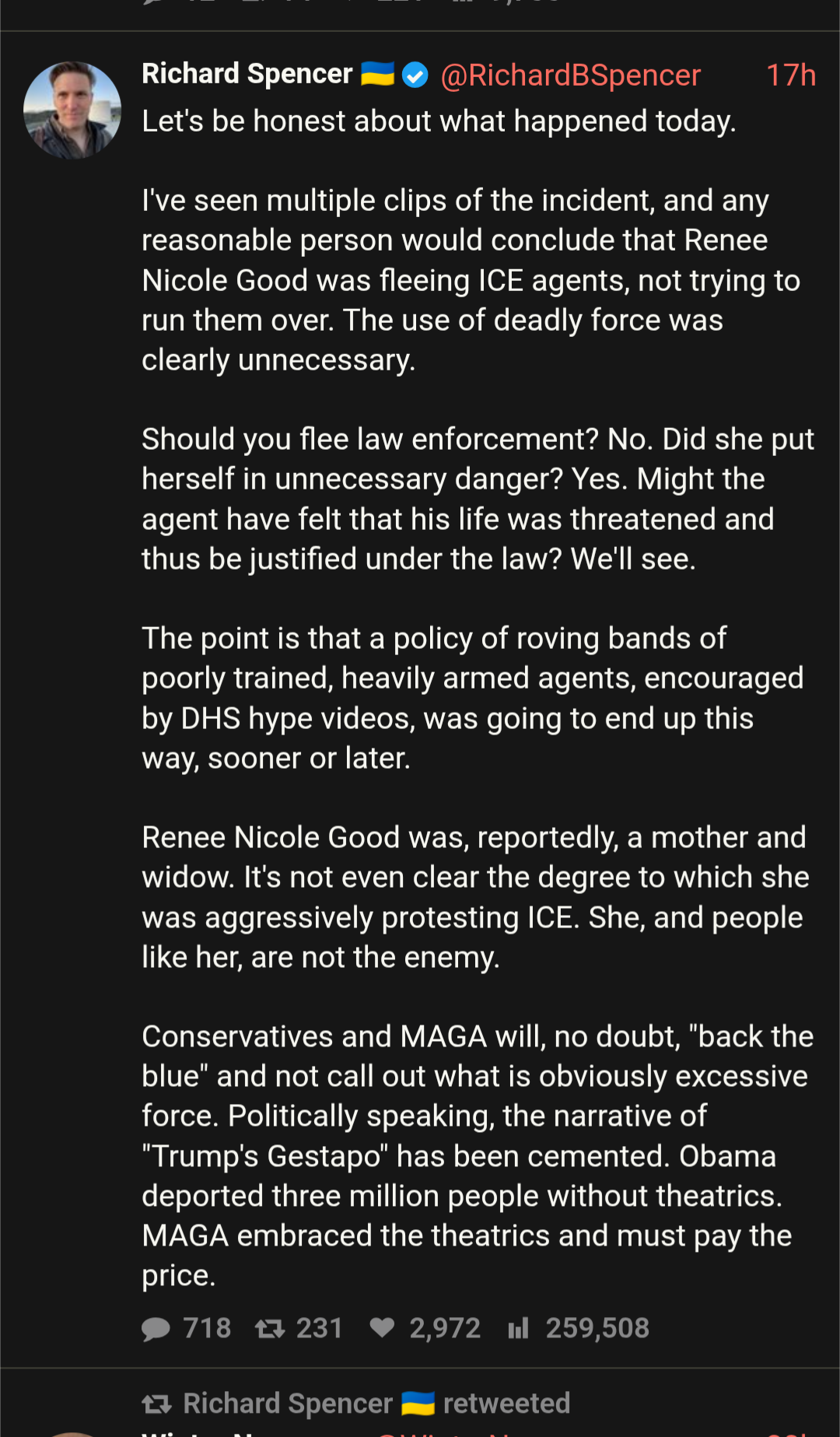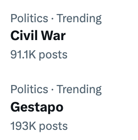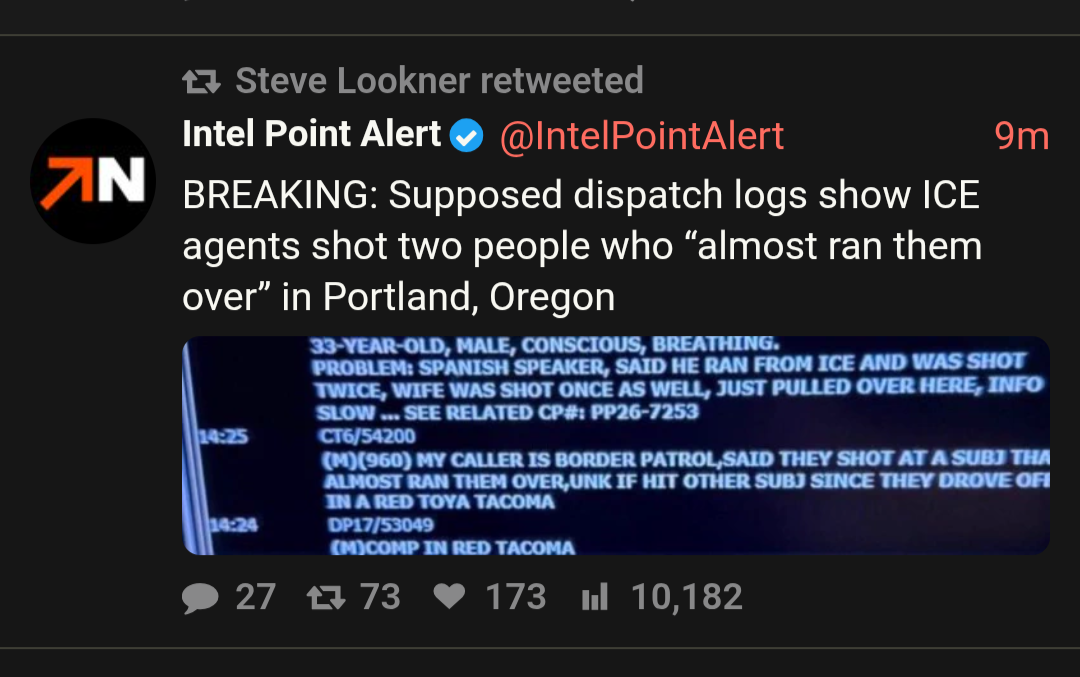 >>2636506>something eventually has to give. This shooting might it. Between the killing itself, the extremly open bloodlust by MAGATs online, and now the calls for hangings by anti-ICE protestors; I'd say that things are heading towards uncharted territory.