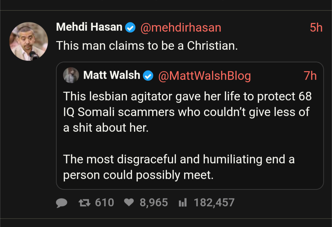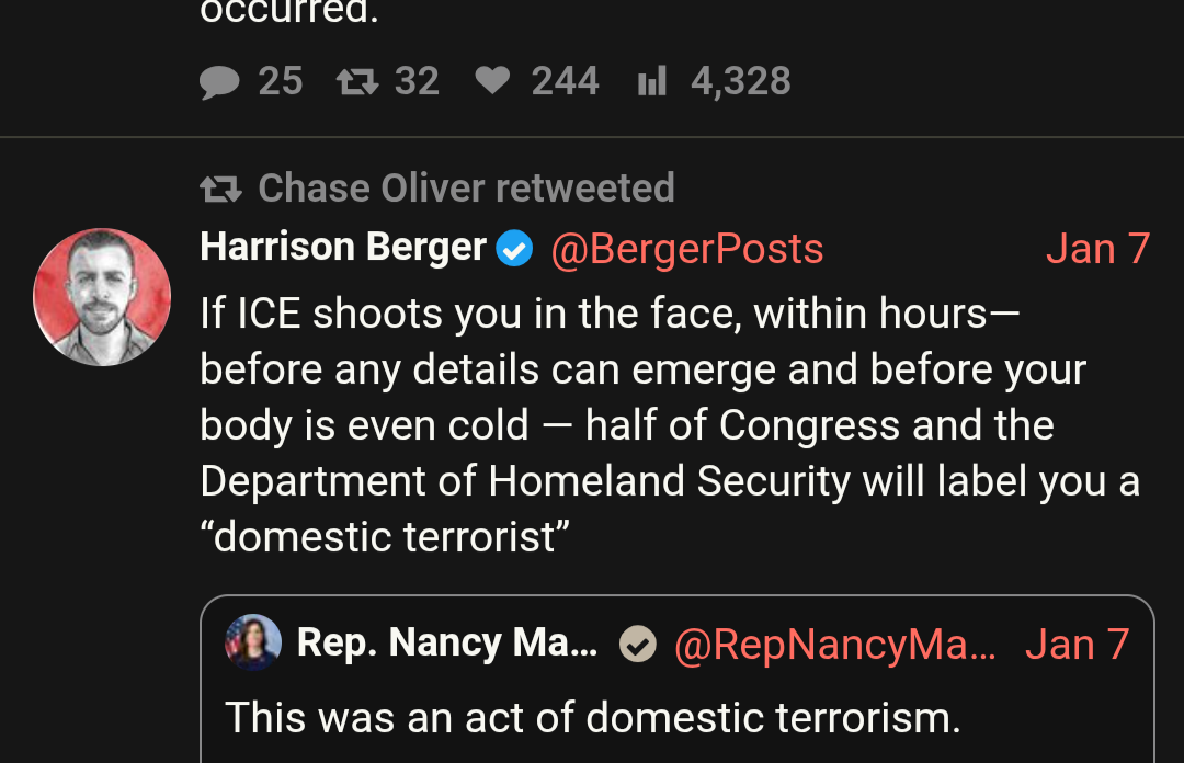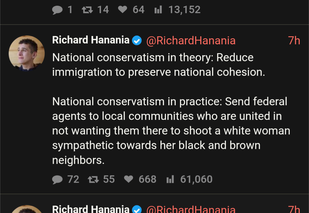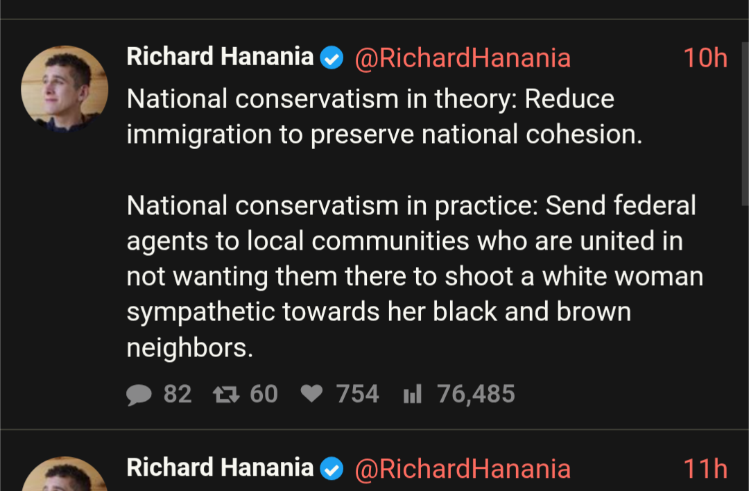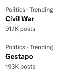 >>2636506>something eventually has to give. This shooting might it. Between the killing itself, the extremly open bloodlust by MAGATs online, and now the calls for hangings by anti-ICE protestors; I'd say that things are heading towards uncharted territory.