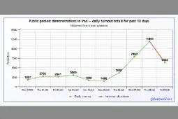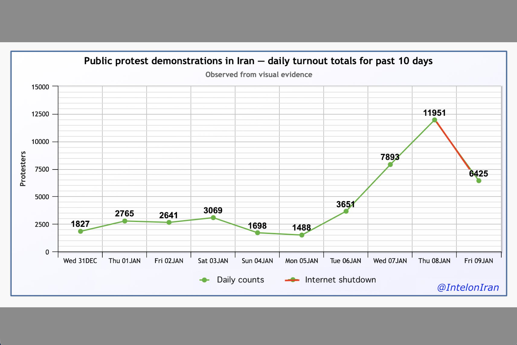 >From a digital material perspective, and without delving into the complexities of Iranian society, the number of protesters is much smaller, and according to Western observatories as well, where they reached a total of 15,000 across all of Iran on the peak day simultaneously. Such protests cannot threaten the regime, especially since the middle class as a whole or the majority is still sitting on the sidelines.