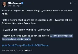 >In summary, what I have written does not mean that the regime is in danger from what is happening internally at present, despite the economic problems and the need for reform and improving citizens' lives, but that a person is nearly certain that the goal of all this atmosphere is to influence Trump to bomb Iran and convince him that the regime will fall with a strike as a prelude to greater involvement that will include American losses he may not want for the sake of "Israel." This does not mean that they are different or that their interests are different, but there may be a difference in the ability to endure exposure to loss and priorities.