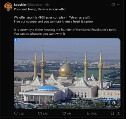 >>2636698if they do, they would absolutely undermine reza pahlavi, it would kill the current moment in iran because the only thing more unpopular than the ayatollah is probably the fucking US. but maybe they're that stupid