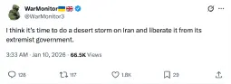 >It means presenting that the regime is on the verge of collapse and that protesters have occupied Iranian cities and that it just needs a puff to fly away, which is unrealistic—not because I want that, but because all the material indicators and numbers point to that in comparison with previous events. All of this may push Trump to decide that a single strike would be sufficient to topple the Islamic regime in Iran without high cost and in just two days. History is full of examples of how wars can drag on and drain empires despite being supposed to be lightning wars that were expected to end in just days.