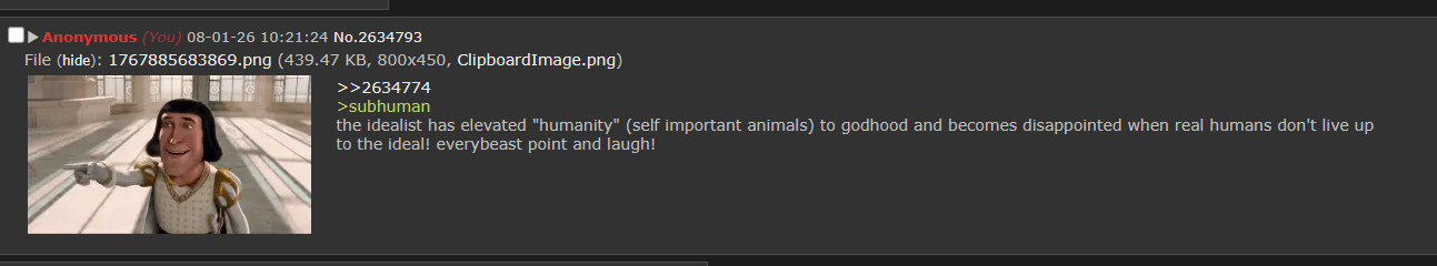 >>2634815where was 'subhuman nature' mentioned in OP?