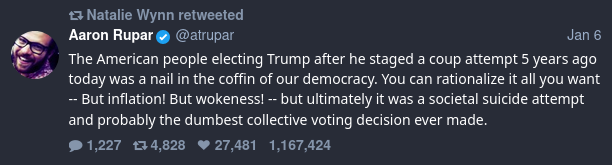 I also think it'd be a major red line to cross for the median voter. So perhaps it'd lead to some meaningful organizing.