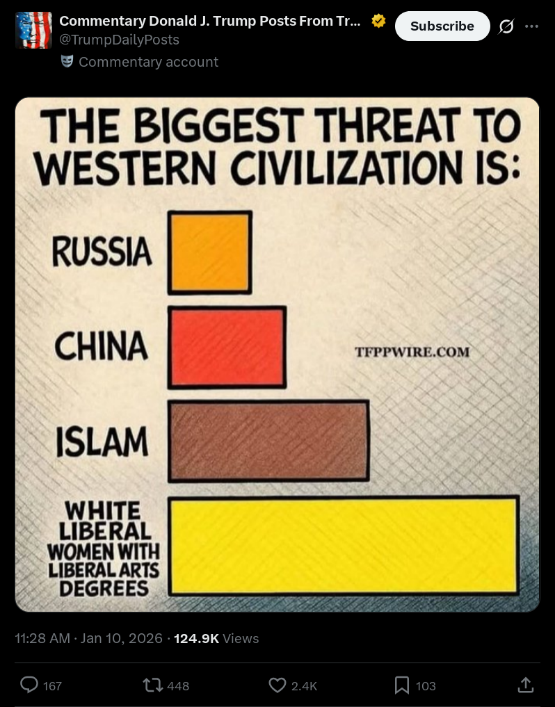 >and the massive increase in vocational education similarly undermines "liberal" universalist notions.why did you post this slop in /usapol/ and not in its own thread?