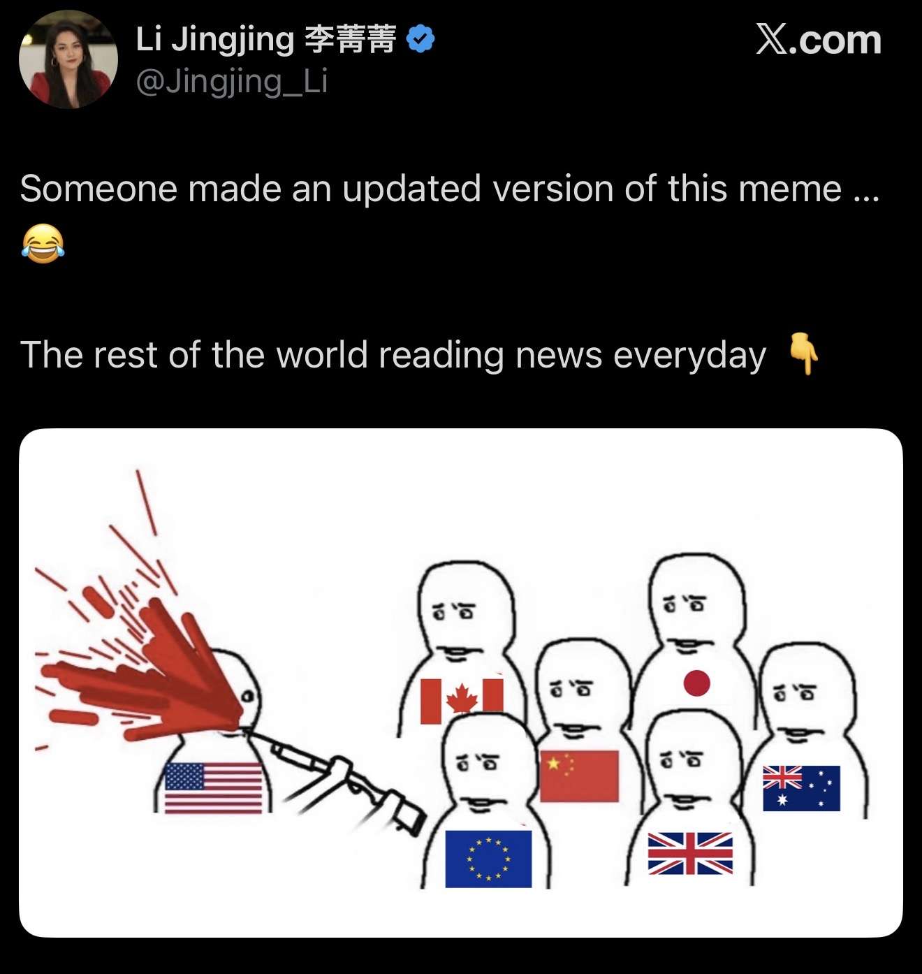 If the "inter imperialist warfare" thought terminating cliche is true, then you can tell which imperialism is the "lesser evil" pretty easily. America has NATO, 800 military bases, does coups, sanctions, embargoes, piracy, funds terrorists ,etc. America bombs schools and hospitals and factories while China builds schools and hospitals and factories. America de-develops nations and uses its reserve currency hegemony to maintain purchasing power disparities. Chinese imperialism, if truly imperialism, is a historically progressive force, while American imperialism actually prevents the kind of integration the anon claims imperialism carries out.