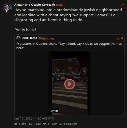 >>2638277>disgustingBourgeois liberals like AOC feel "disgust" when the interracial working class unites denounce fascism from landlords that have historically done the same things in NYC as they do in Palestine. Americans actually do know what its like to live under Zionism. As children they were arrested and surveilled, and subjected to a mass molestation program from Mayor Bloomberg: