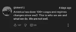 >>2640657>At any rate I'm not trying to suggest that the Democrats are anti-imperialists, but "Anything said before the word 'but' is horse shit." - Ned Starch, Gambo Thrones Season 0