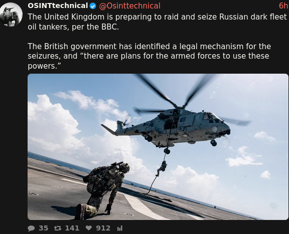>>2642301>The British government has identified a legal mechanism for the seizuresHow very hyper-legalist of them, is the legal mechanism for seizing ships in international waters and therefore outside of their sanctions regime that we did it all the time in the 1700s?