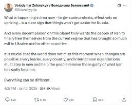 zelya chiming in about Iran's protests. stating very obviously that Iran's fall, it's a victory for their banderism.
