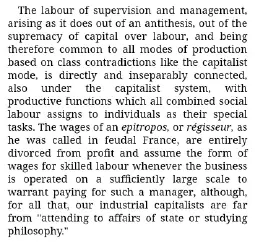 >Productive and unproductive labour is here throughout conceived from the standpoint of the possessor of money, from the standpoint of the capitalist, not from that of the workman; hence the nonsense written by Ganilh, etc., who have so little understanding of the matter that they raise the question whether the labour or service or function of the prostitute, flunkey, etc., brings in returns. Marx says only bourgeois phillistine dare fathom that prostitutes are proletarian.