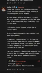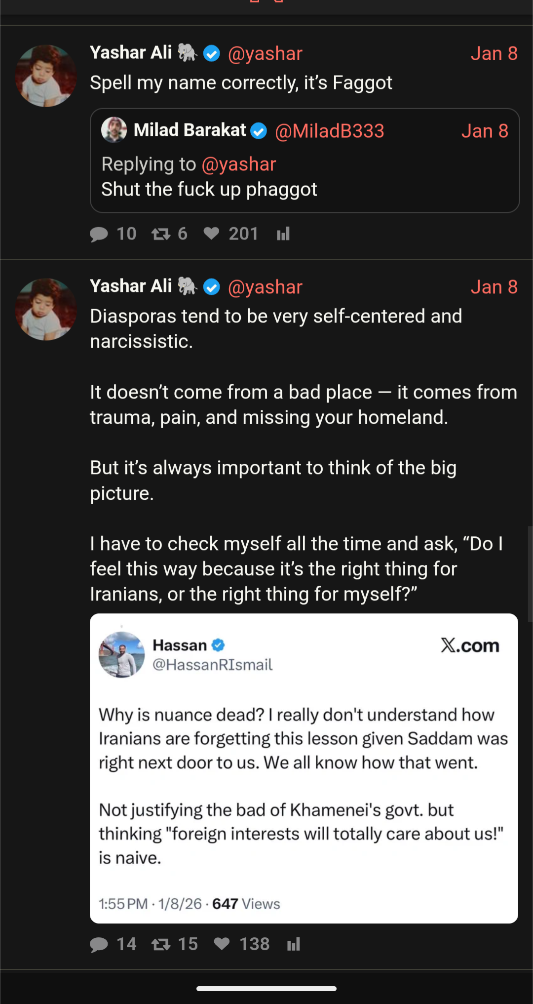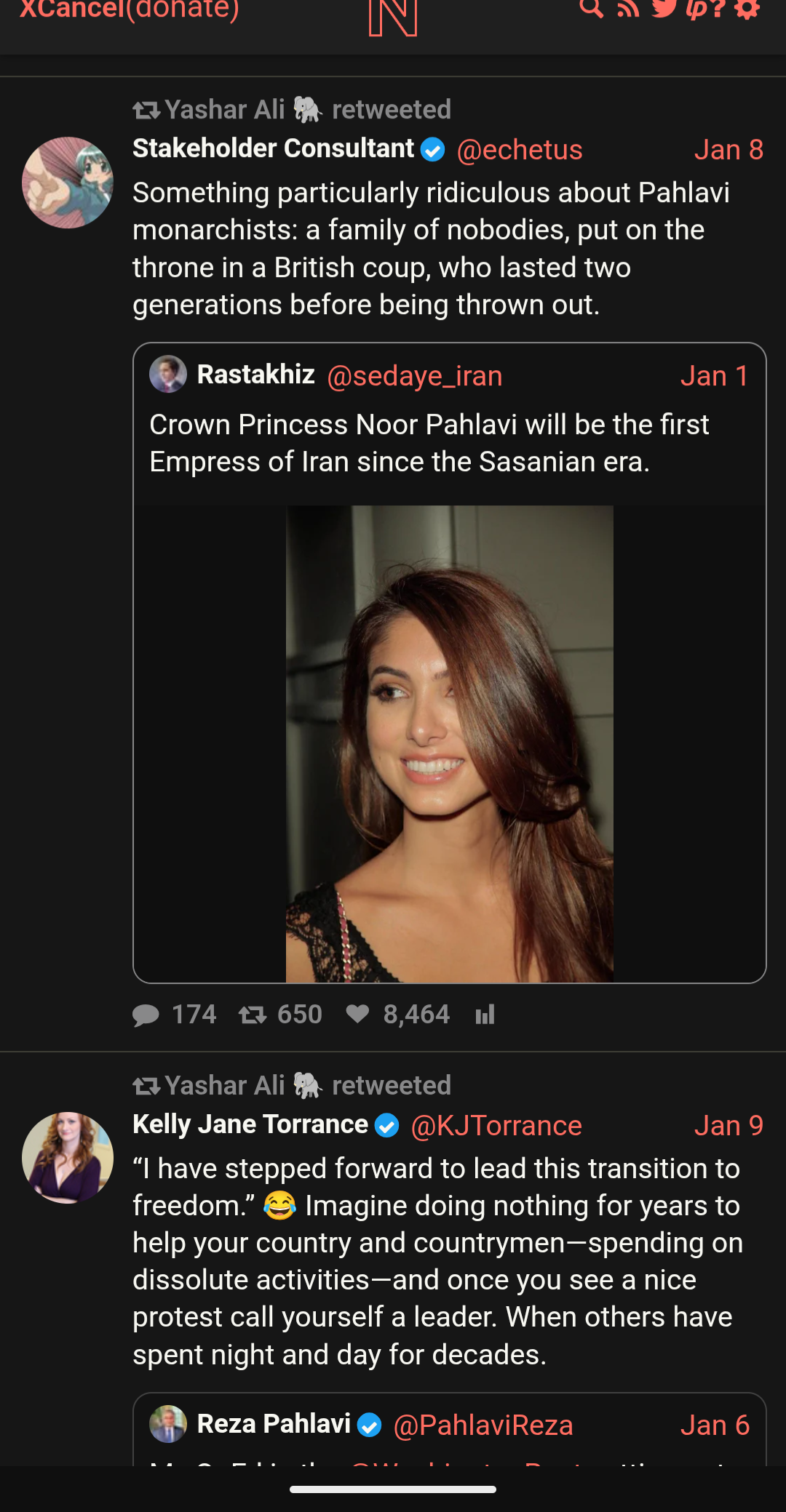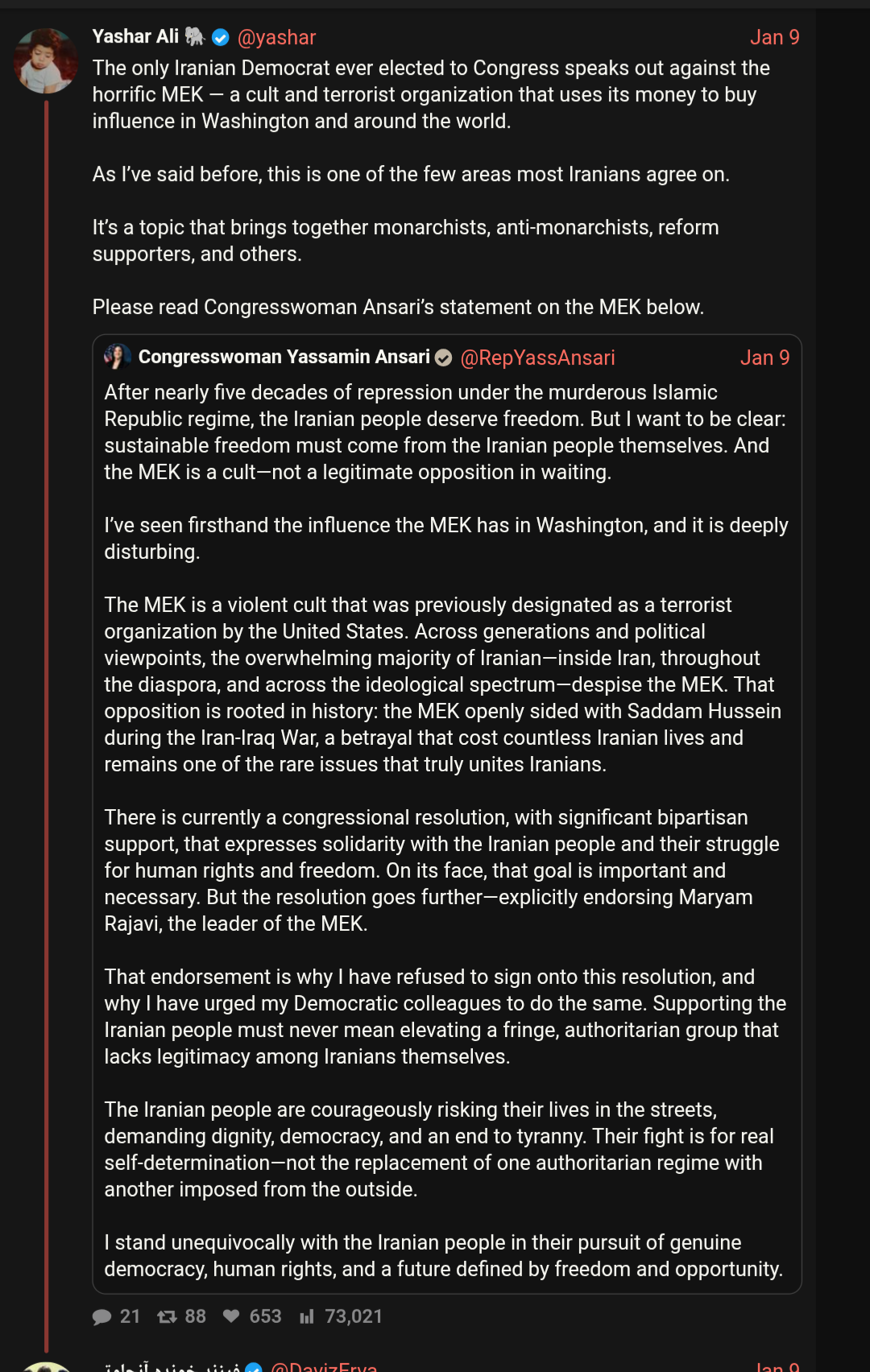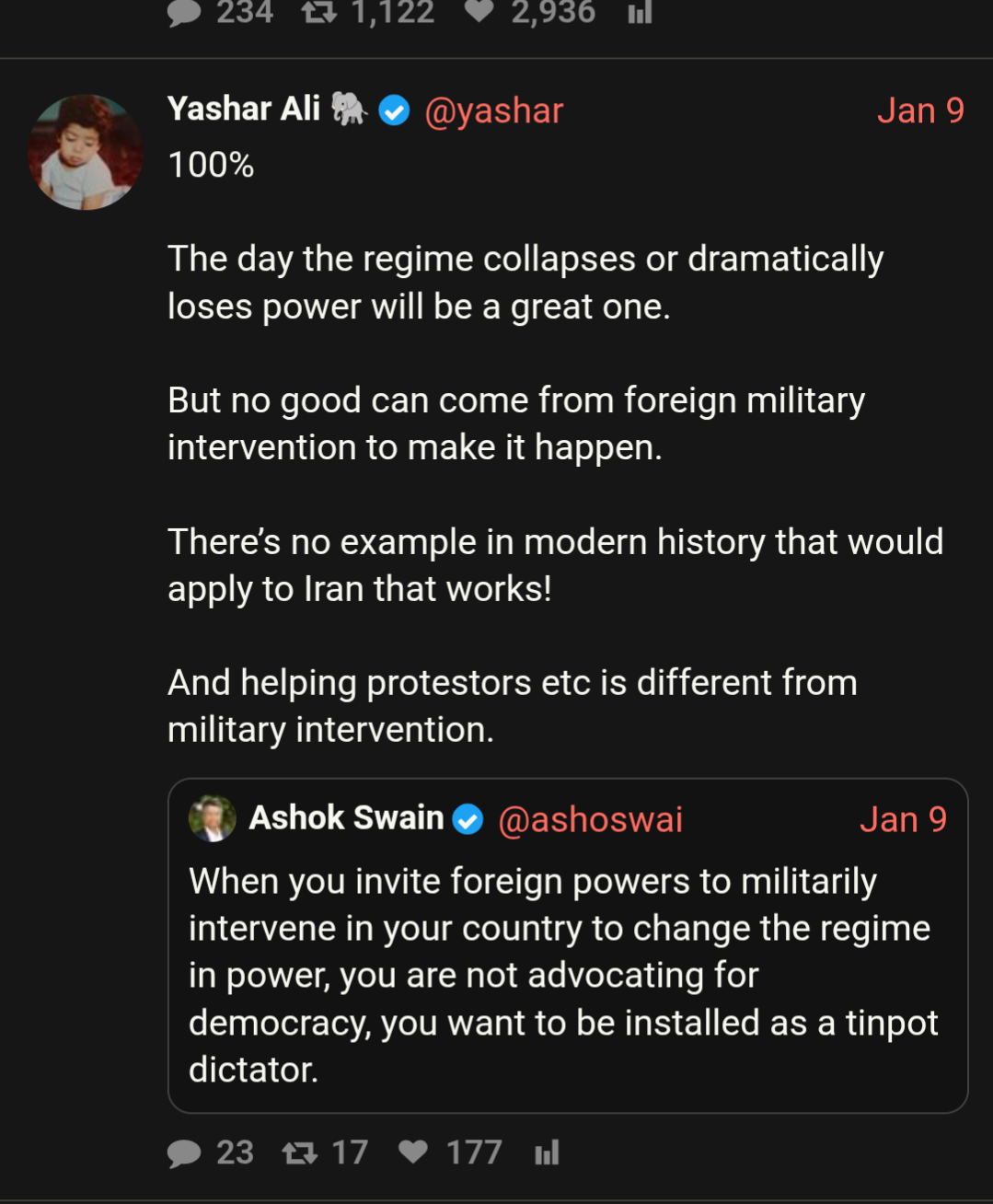 I like reading this guy stuff for updates about Iran currently. Yes, he's a liberal. Yes, he's a Democrat voter. Yes he has a lot of normie takes but also he's in iranian-american who despises monarchists and he hates the Shah so he says some interesting stuff about the ones who keep shilling the shah