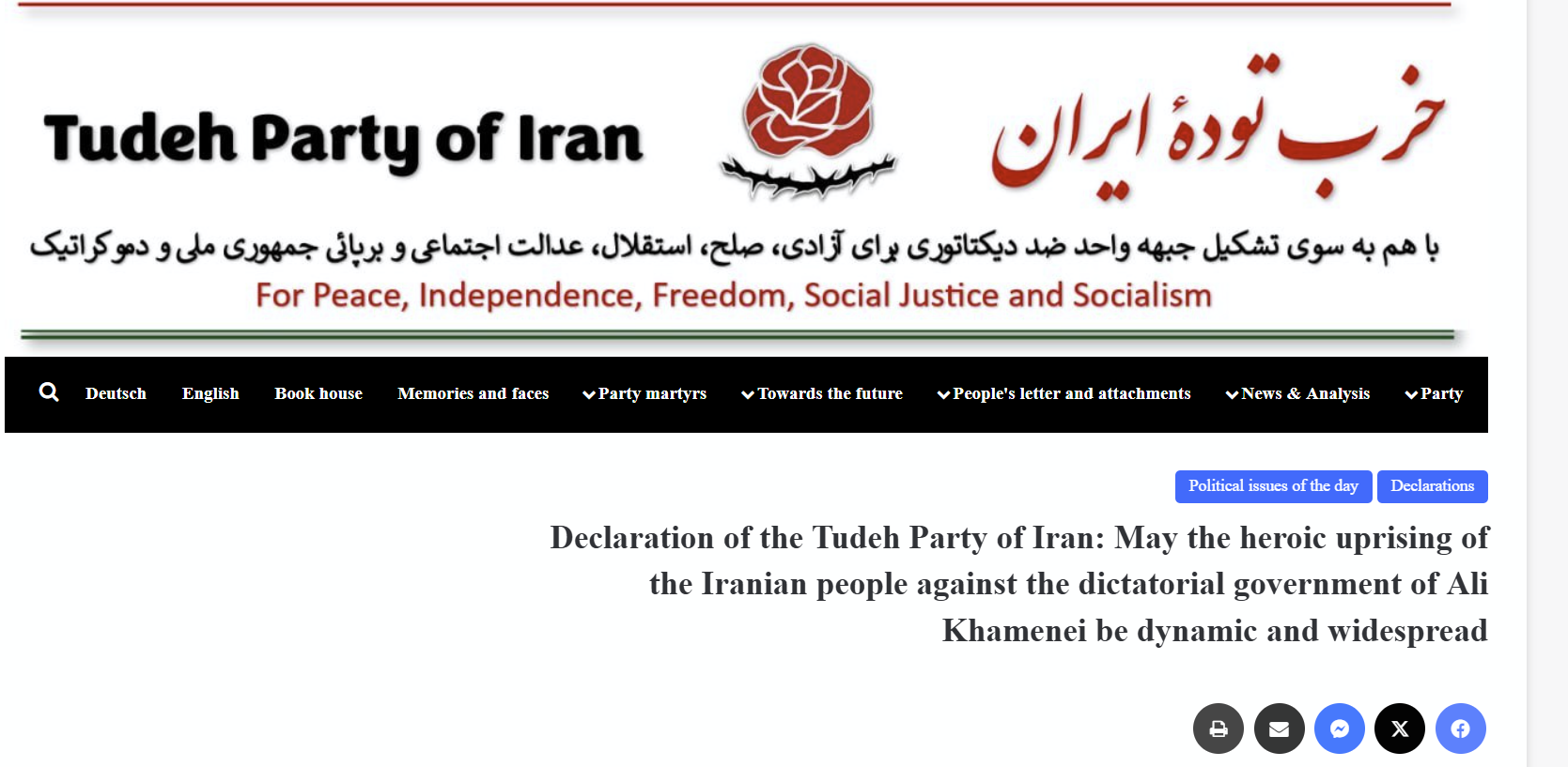 >The Syndicate also strongly condemns any propaganda, justification, or support for military intervention by foreign governments, including the United States and Israel. Such interventions not only lead to the destruction of civil society and the slaughter of the people, but also provide another pretext for the regime to continue its violence and repression. Past experiences have shown that Western imperialist governments have no regard for the freedom, livelihood, and rights of the Iranian people.