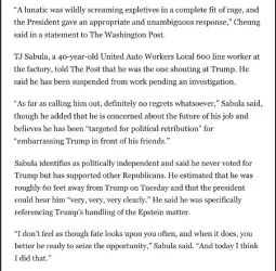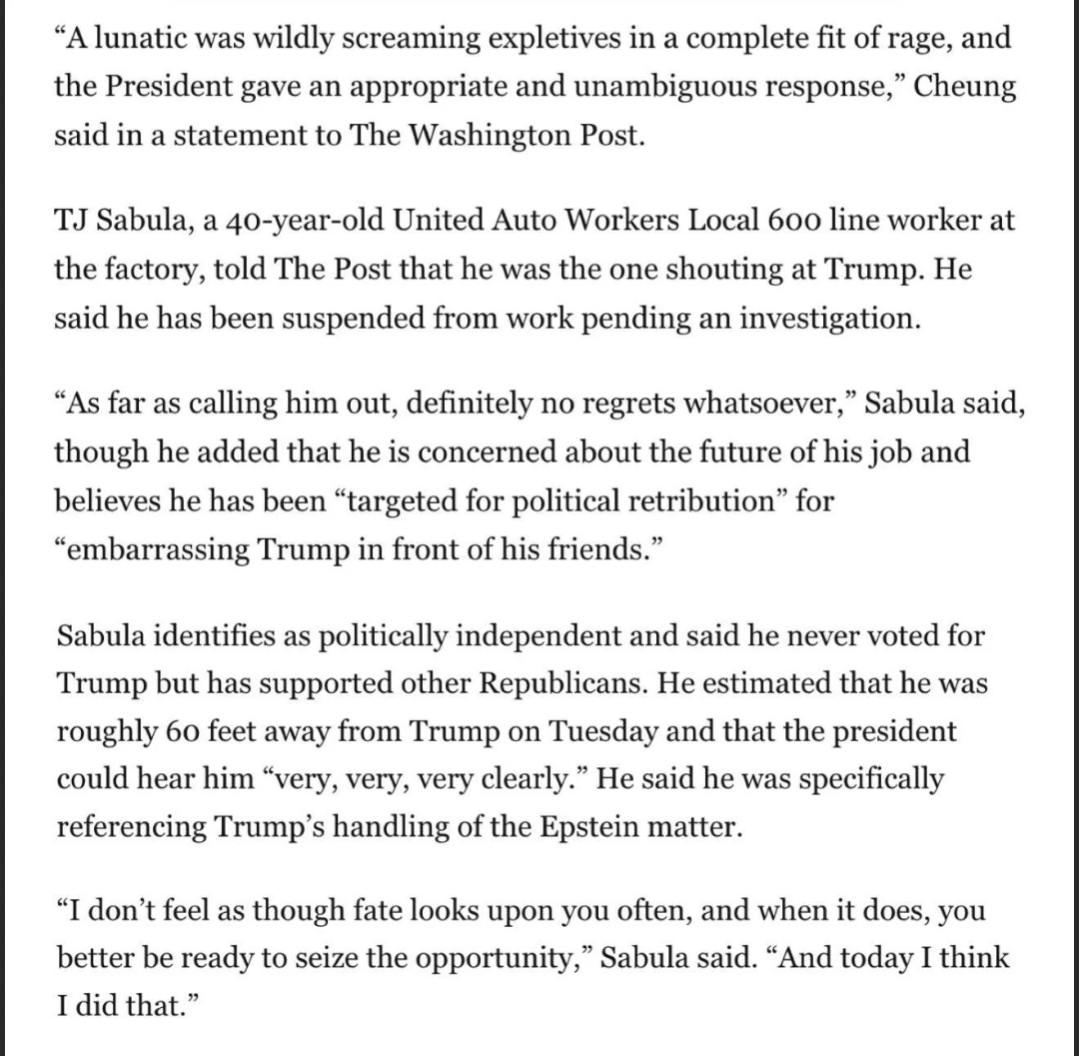 https://www.cbsnews.com/detroit/news/uaw-member-suspended-by-ford-after-exchange-with-president-trump/>>2644637probably increased, imagine being able to commit heinous acts of violence against women and getting the WH to stand for you in public for it.