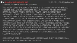 YOU WANT CLASS STRUGGLE TO RETURN TO AMERICA? COMMIT SOCIAL MURDER ON AN UNPRECEDENTED SCALE. DESTROY POWER STATIONS. DESTROY POWER POLES. DESTROY POWER LINES. DESTROY FIRE HYDRANTS. START FIRES. BURN DOWN SCHOOLS AND HOSPITALS AND LIBRARIES. SHOOT MEDICAL PROFESSIONALS. BLOW UP AMBULANCES. DUMP BOXES OF CALTROPS IN BUSY INTERSECTIONS AND FREEWAY RAMPS. MAKE POTHOLES ON HIGH SPEED ROADS. LAY OUT TRIP WIRES FOR MOTORCYCLES. ROB GUN STORES. DO MASS SHOOTINGS. DERAIL TRAINS. DESTROY TRAIN TRACKS. CAUSE A TOTAL BREAKDOWN OF ALL BURGER REICH SOCIETY SO THAT CLASS STRUGGLE IS THE ONLY OPTION. ARM THE HOMELESS AND INDIGENOUS AND ESCAPED PRISONERS TO RAPE AND MURDER THE UNSUSPECTING SUBURBANITE CRACKERS AND SERVICE SECTOR "WORKERS"